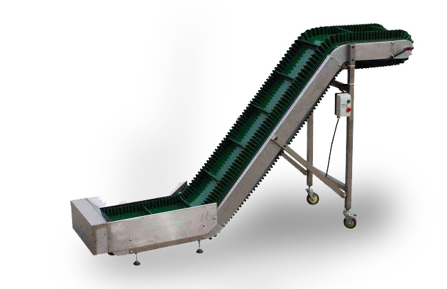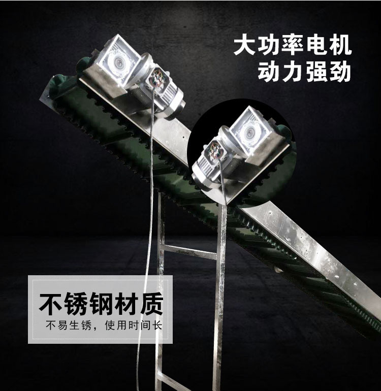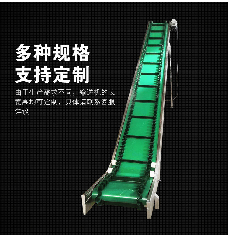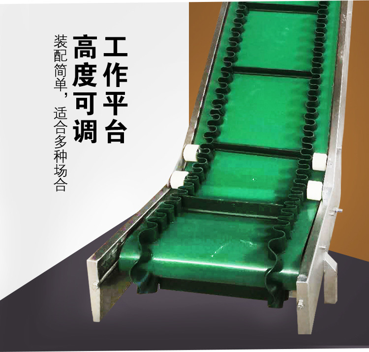 裙邊皮帶輸送機(jī)是在平形橡膠運(yùn)輸帶兩側(cè)粘上可自由伸縮的橡膠波形立式"裙邊",在裙邊之間又粘有一定強(qiáng)度和彈性的橫隔板組成匣形斗,對物料進(jìn)行連續(xù)輸送的設(shè)備。可大傾角輸送甚至垂直提升散料。